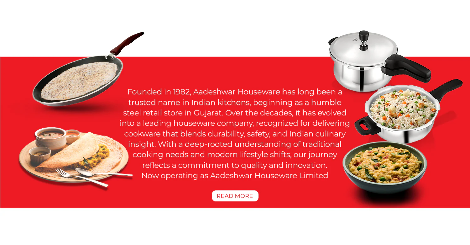 Aadeshwar Houseware has long been a trusted name in Indian kitchens, beginning as a humble steel retail store in Gujarat. Over the decades, it has evolved into a leading houseware company, recognised for delivering cookware that blends durability, safety, and Indian culinary insight. With a deep-rooted understanding of traditional cooking needs and modern lifestyle shifts, our journey reflects a commitment to quality and innovation. Now operating as Aadeshwar Houseware Limited, we proudly lead with our flagship brand Protege a name that represents our vision to empower home chefs across India. Guided by our motto “Make Your Kitchen Smarter”, Protege embodies smart design, advanced functionality, and a spirit of continuous innovation while staying true to the soul of Indian cooking.
